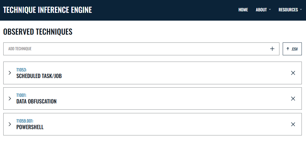 – Technique Inference Engine https://center-for-threat-informed-defense.github.io/technique-inference-engine/#/